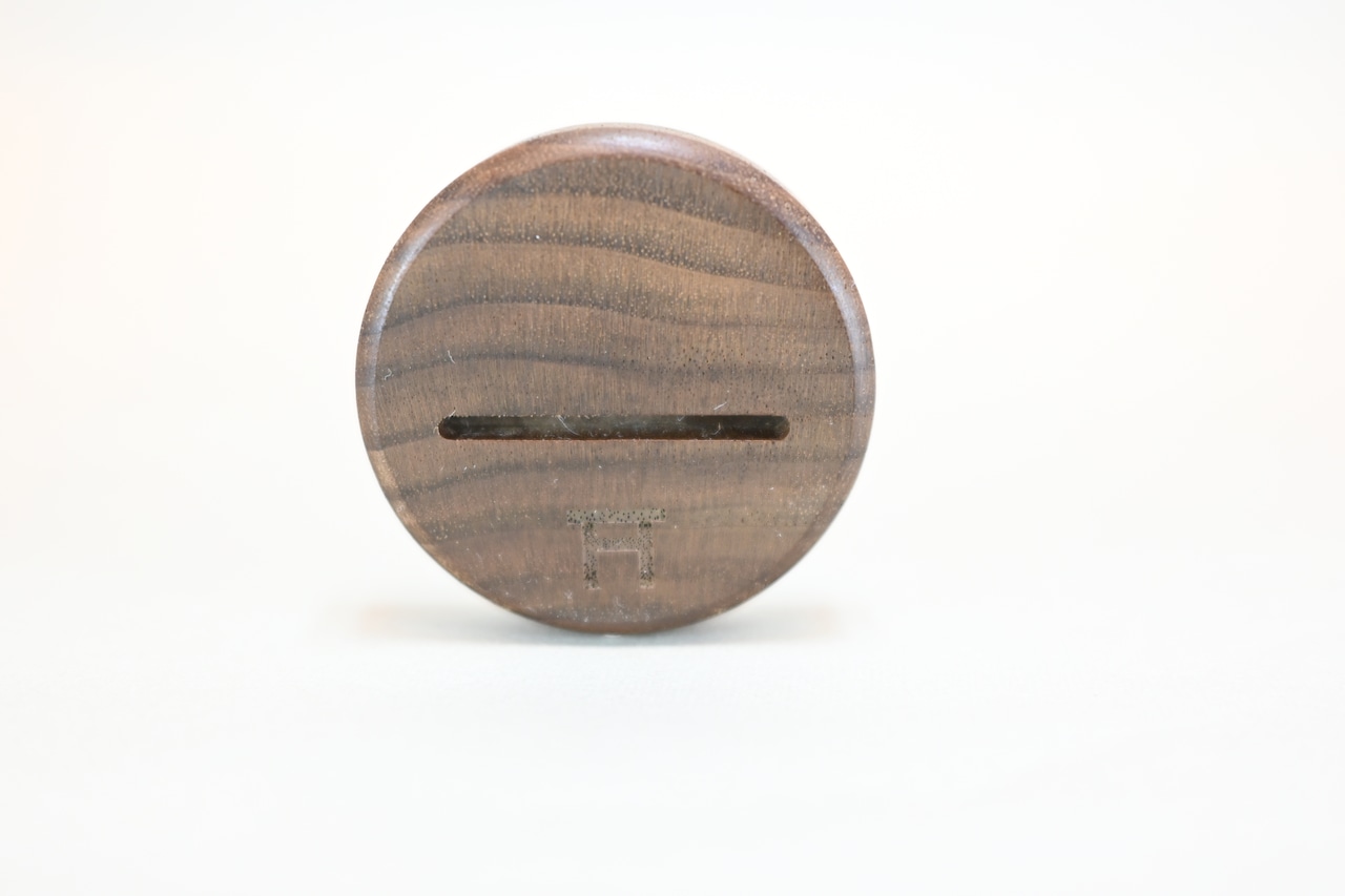 この作品は、北欧家具などで使用されるウォールナット材/ビーチ材【無垢材】を使用し、上部に長さ30mm、幅2mm、深さ5mmの切り込みを入れて、おみくじを差し込めるようにしました。